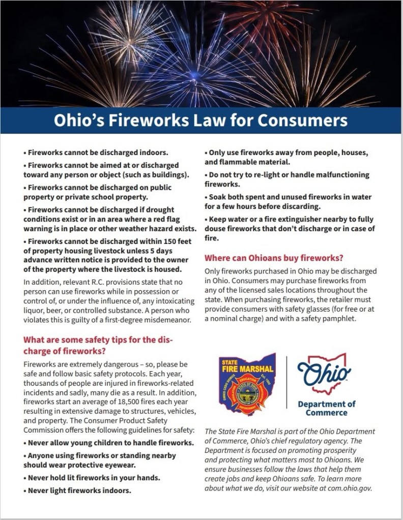 Read the full laws here: https://com.ohio.gov/divisions-and-programs/state-fire-marshal/fireworks/guides-and-resources/consumer-information-on-ohios-fireworks-laws